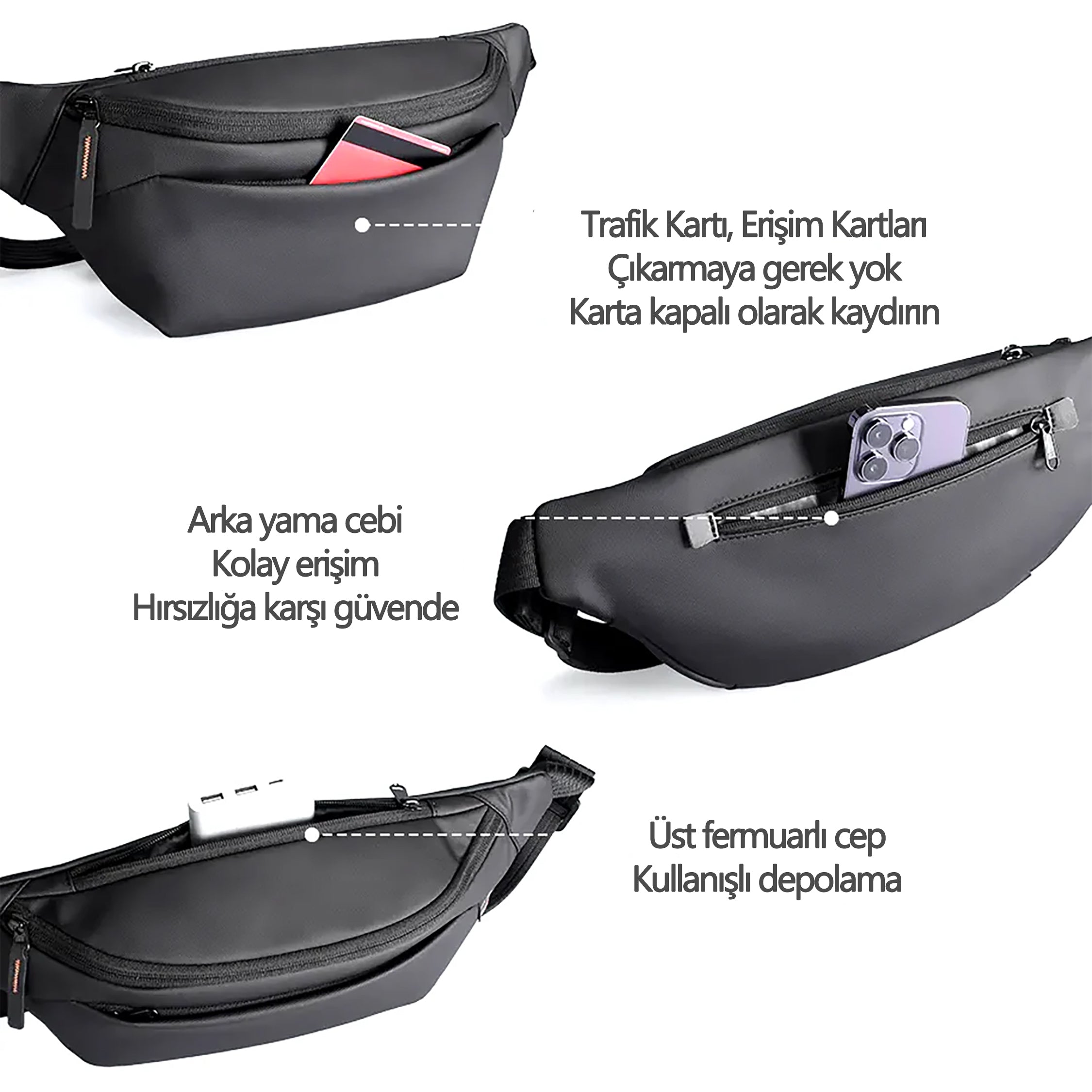 Brak çantası, şehir yaşamı için pratik çözümler sunar. Ön kısmındaki cep sayesinde ulaşım ve erişim kartlarını çantadan çıkarmadan kolayca okutabilirsiniz. Arka yama cep, hırsızlığa karşı güvenli bir saklama alanı sağlarken aynı zamanda kolay erişim sunar. Üst fermuarlı geniş cep ise günlük eşyalarınızı düzenli bir şekilde taşımanız için ideal depolama alanı sunar.
