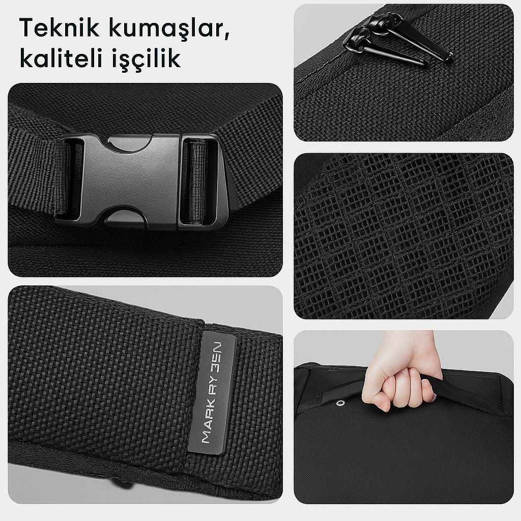 Mark Ryden Simple Fashion, 9.7 inç iPad için ayrı dijital bölmeye sahip, suya dayanıklı ve yüksek yoğunluklu Oxford kumaştan üretilmiş bir çapraz çantadır. USB şarj portu ile cihazlarınızı kolayca şarj edebilirsiniz.