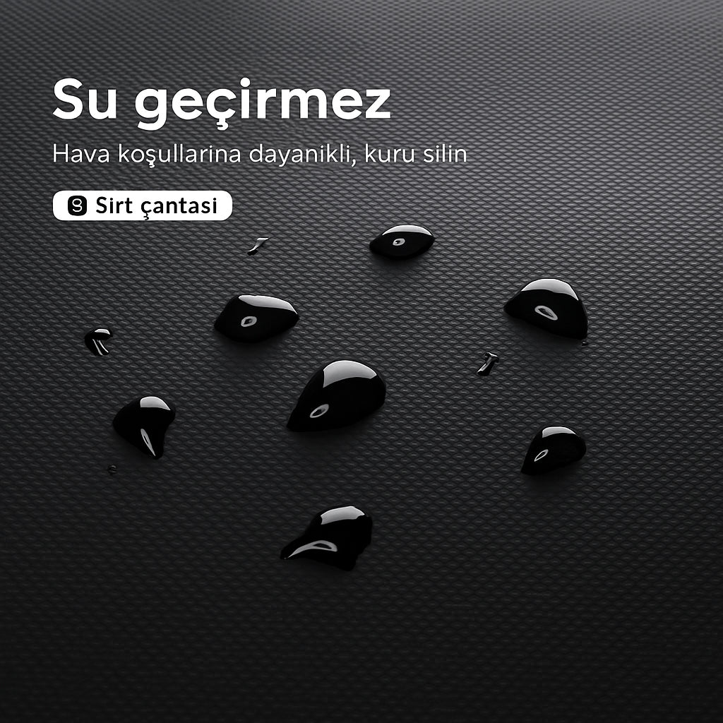 Dayanıklı ve su geçirmez dış yüzeyi sayesinde çantanız içerideki eşyaları aniden bastıran yağmurlardan, dökülen sıvılardan veya zorlu doğa koşullarından güvenle korur. Islak zemine koyun, silin ve yolunuza devam edin. Pratik, koruyucu ve her an hazır!