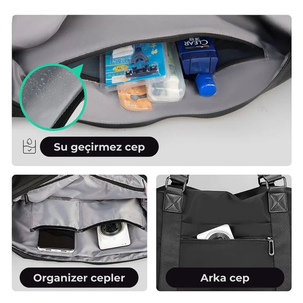 Su geçirmez cep ile sıvı teması olan ürünlerinizi güvenle taşıyın. Organizer cepler sayesinde elektronik eşyalarınız ve aksesuarlarınız düzenli kalır. Arka cep ise hızlı erişim gereken eşyalar için hem pratik hem de güvenli bir çözüm sunar. İşlevsellik ve düzen bir arada!