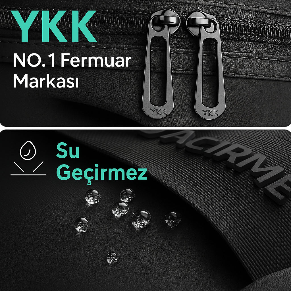 Dünyaca ünlü YKK fermuar sistemiyle donatılan bu çanta, uzun ömürlü ve güvenilir kullanım sunar. Su geçirmez dış yüzeyi sayesinde eşyalarınız hava koşullarından etkilenmez. Kaliteyi ve korumayı bir arada arayanlar için tasarlandı.