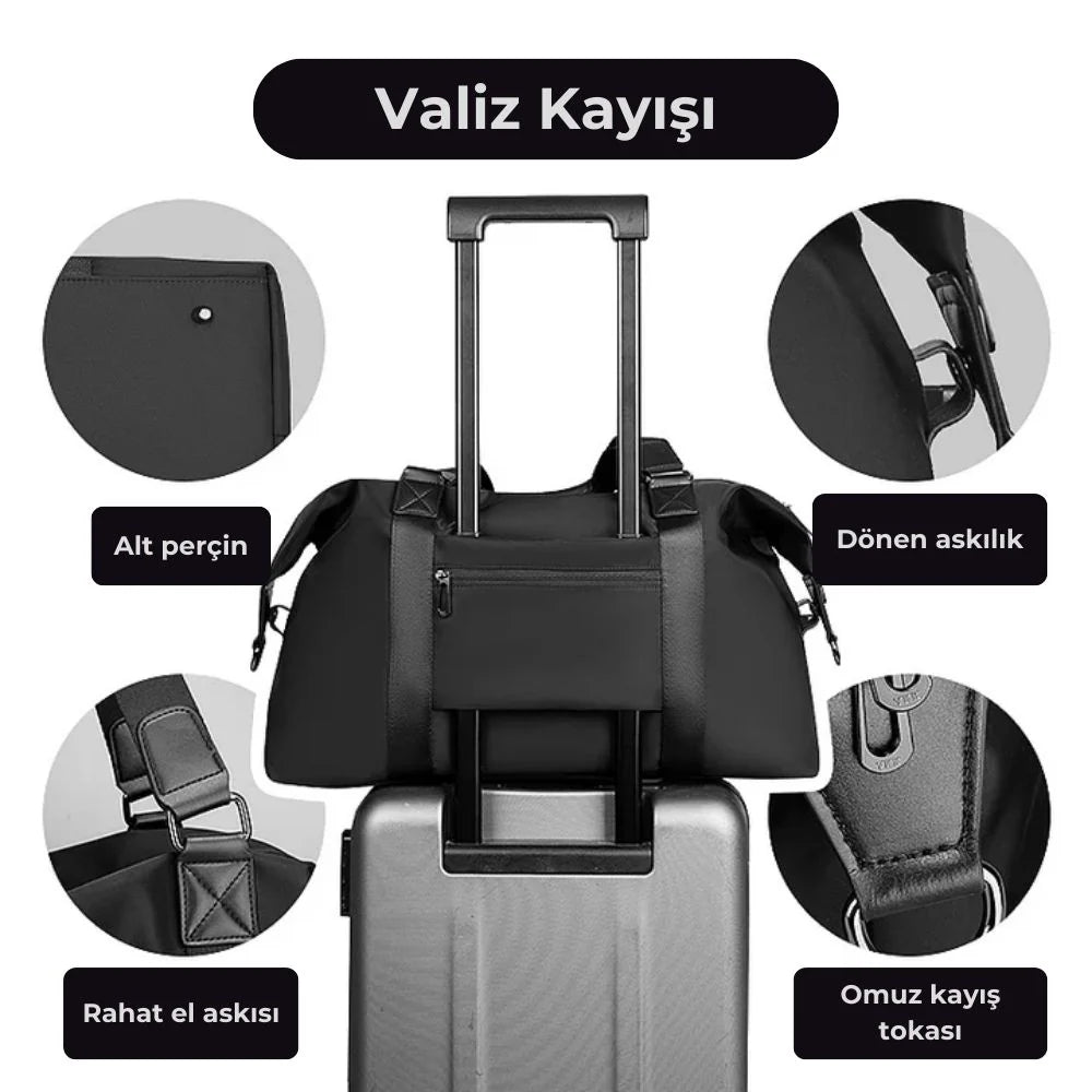Çanta, hem el askısı hem de omuz askısı ile rahatça taşınabilir. Ayrıca, valiz kayışı ile seyahatlerde ekstra kolaylık sağlar, bu da çantanızın valizinize takılmasını ve kolayca taşınmasını sağlar.