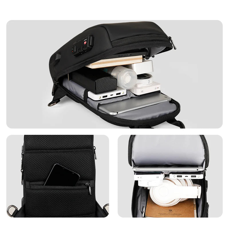 Tek askılı tasarımı ve fermuarlı kapanışı, çantayı hızlı ve rahat şekilde kullanmanıza olanak tanır. Harici USB şarj portu ile cihazlarınızı hareket halindeyken şarj edebilirsiniz.