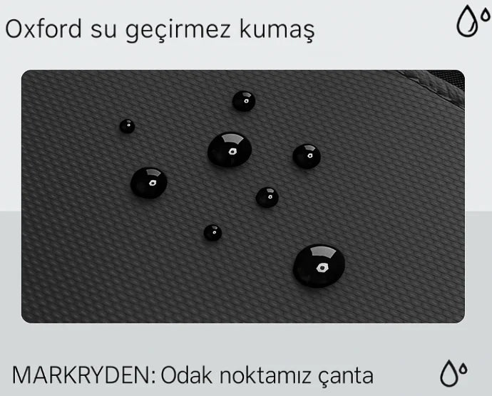 Oxford su geçirmez kumaşı sayesinde yağmurlu havalarda bile eşyalarınız güvende. Su damlaları tek silmeyle kurur, böylece çantanız her zaman temiz ve kuru kalır.