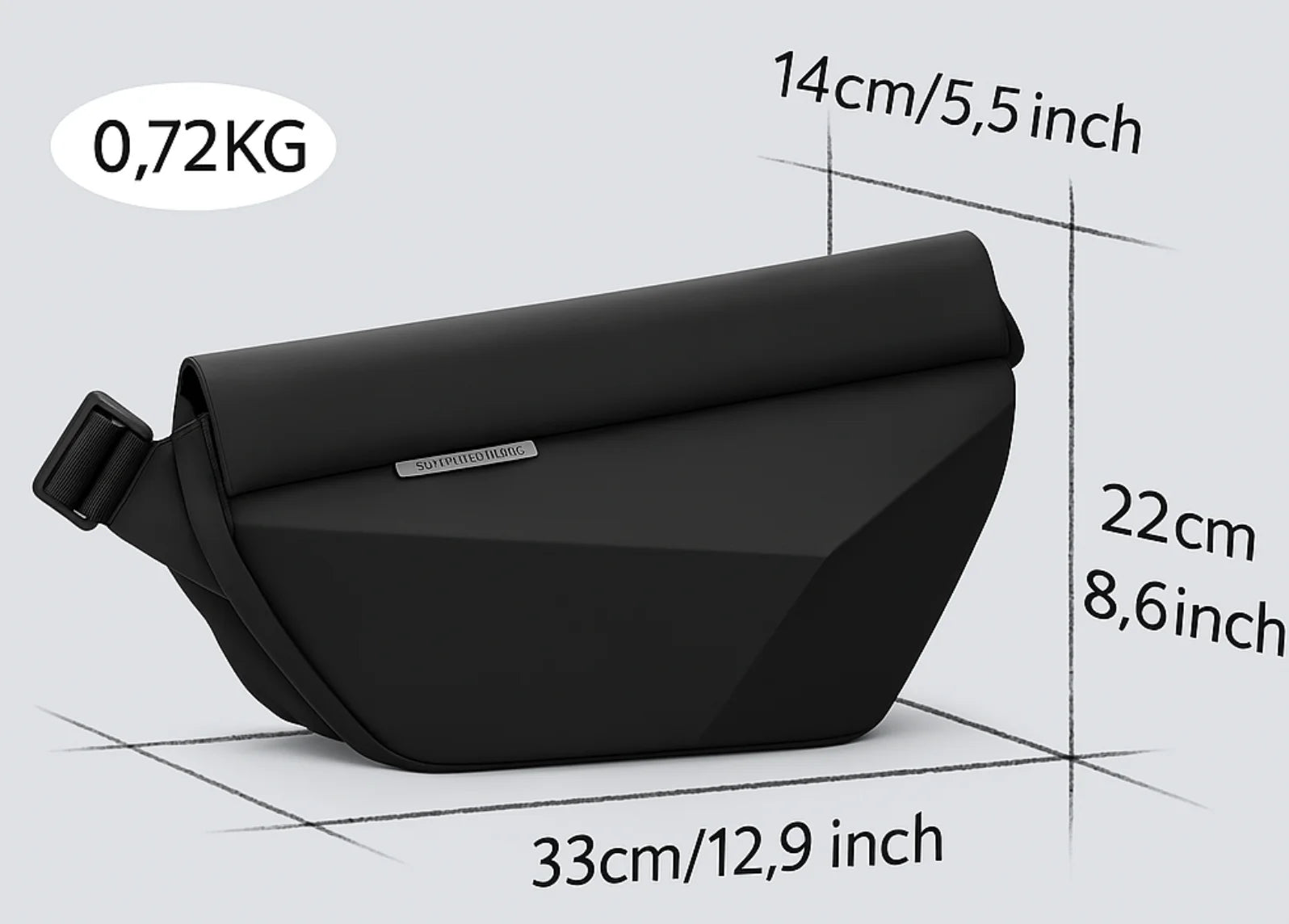 Sadece 720 gram ağırlığındaki bu hafif ve kompakt çanta, 33x22x14 cm boyutlarıyla maksimum konfor sunar. Ayarlanabilir omuz askısı sayesinde herkes için ideal taşıma deneyimi sağlar.