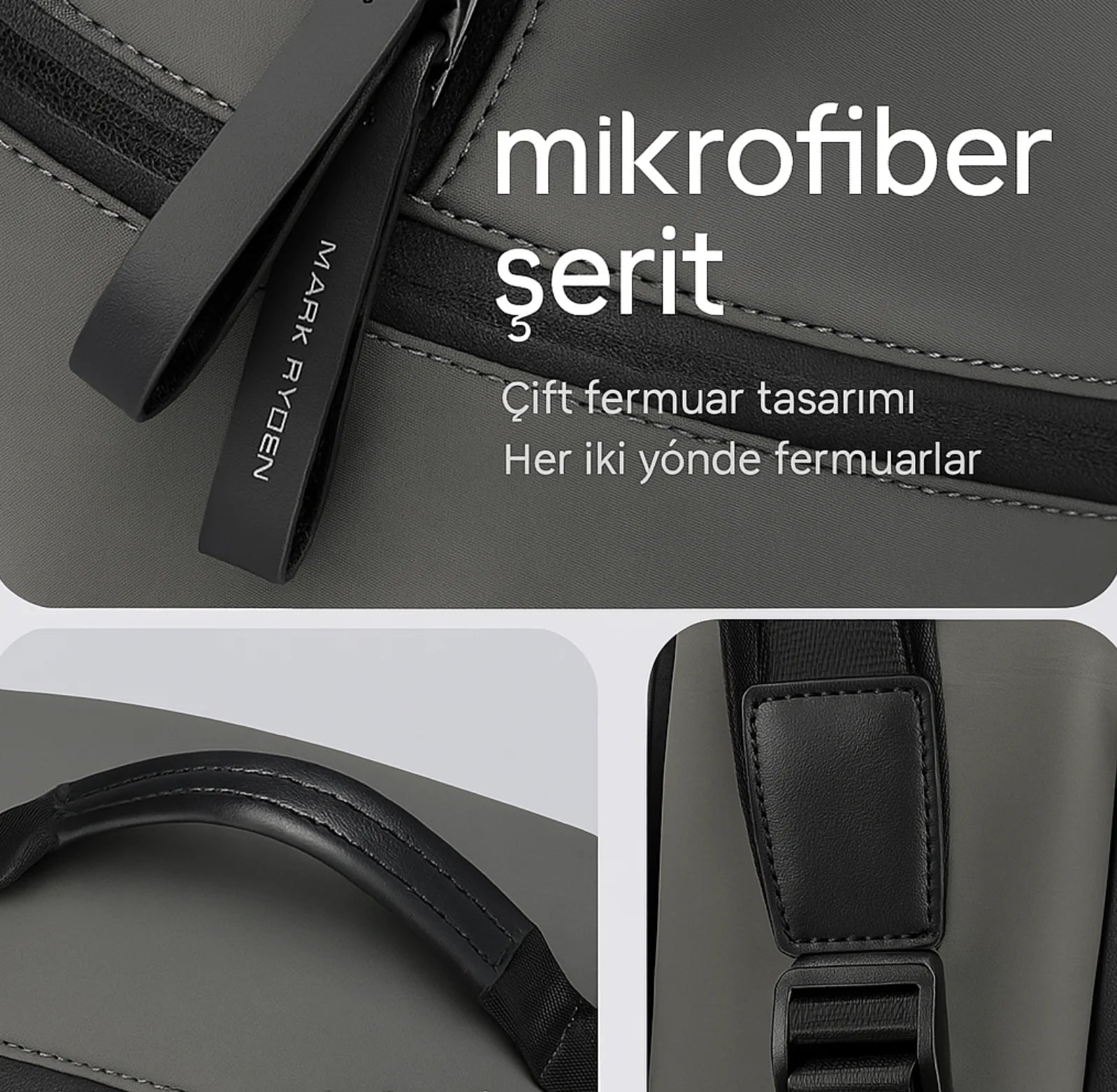 Mikrofiber şerit yapısı ve çift yönlü fermuar tasarımı ile çantanız hem estetik hem de işlevsel. Deri kaplı taşıma sapı ve güçlendirilmiş dikiş detayları, uzun süreli kullanım için dayanıklılığı artırır.