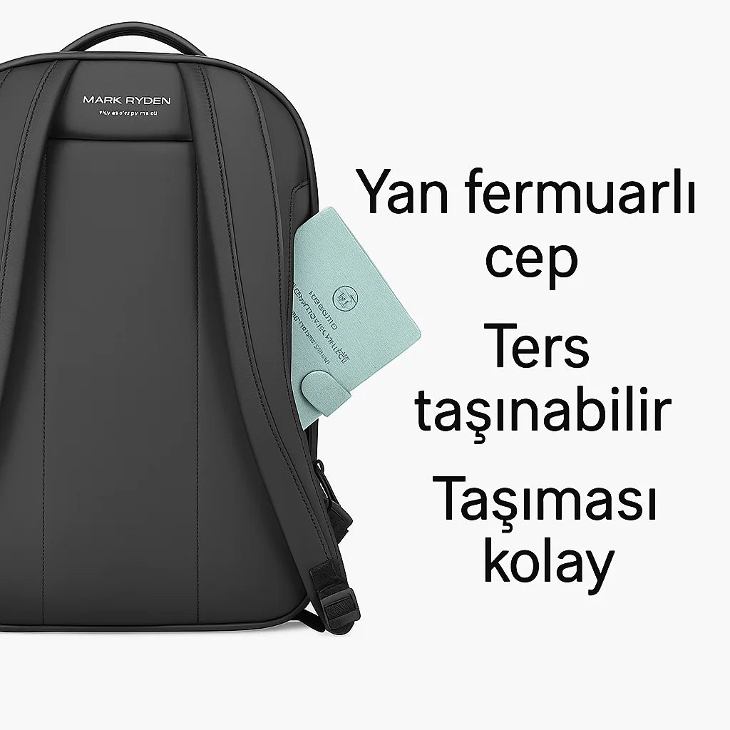 Sırt kısmında yer alan yan fermuarlı cep, eşyalarınızı hızlıca erişilebilir kılarken dış müdahalelere karşı koruma sağlar. Ters taşınabilir yapısı sayesinde kullanım kolaylığı sunar.