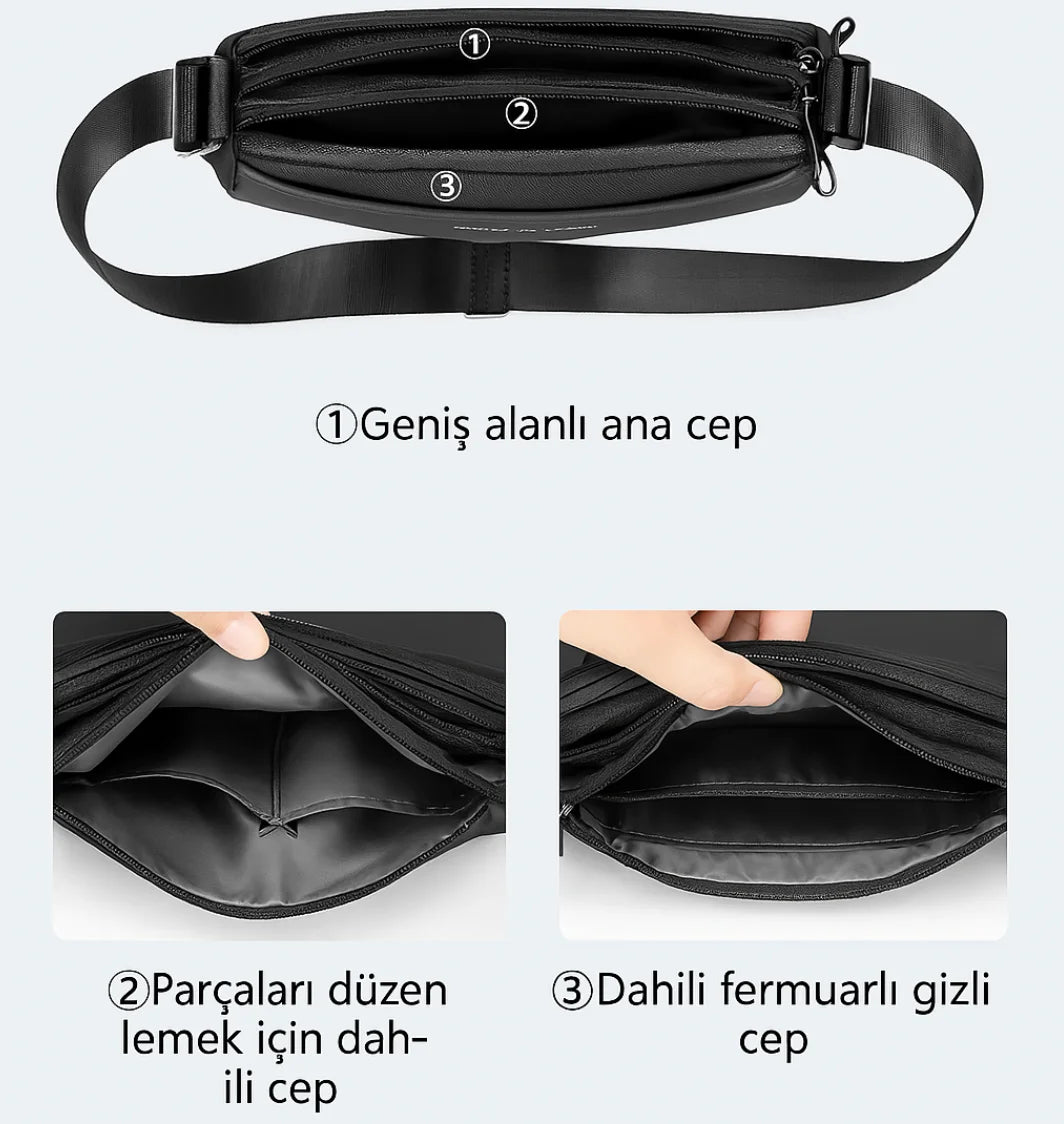 Oxford su geçirmez kumaş ve sağlam metal tokalar uzun ömürlü kullanım sunar. YKK fermuarlar, pürüzsüz ve güvenilir bir açma-kapama deneyimi sağlar.