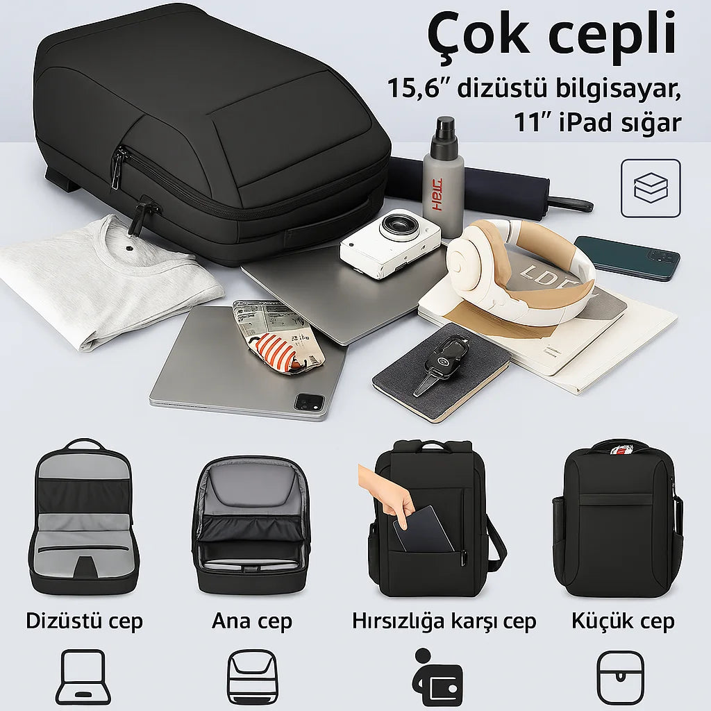 15.6 inç laptop ve 7.9 inç iPad için ayrılmış bölmeler ile 3-5 günlük kıyafet ve eşyalarınızı kolayca organize edebilirsiniz. Ana bölme, yan cepler ve üst küçük cep ile her şey elinizin altında olur.