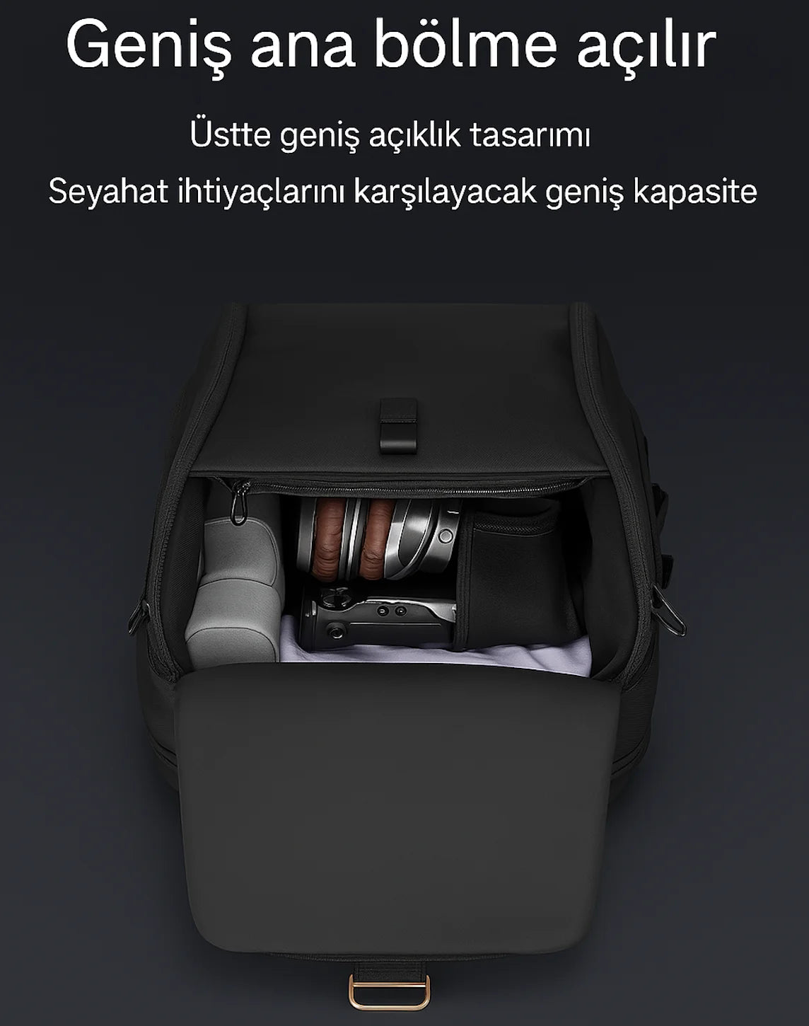 Üst kısımdaki ferah açıklık tasarımı sayesinde eşyalarınıza kolay erişim sağlar. Seyahatlerinizde ihtiyacınız olan tüm eşyaları rahatlıkla yerleştirebileceğiniz geniş iç hacmiyle öne çıkar.