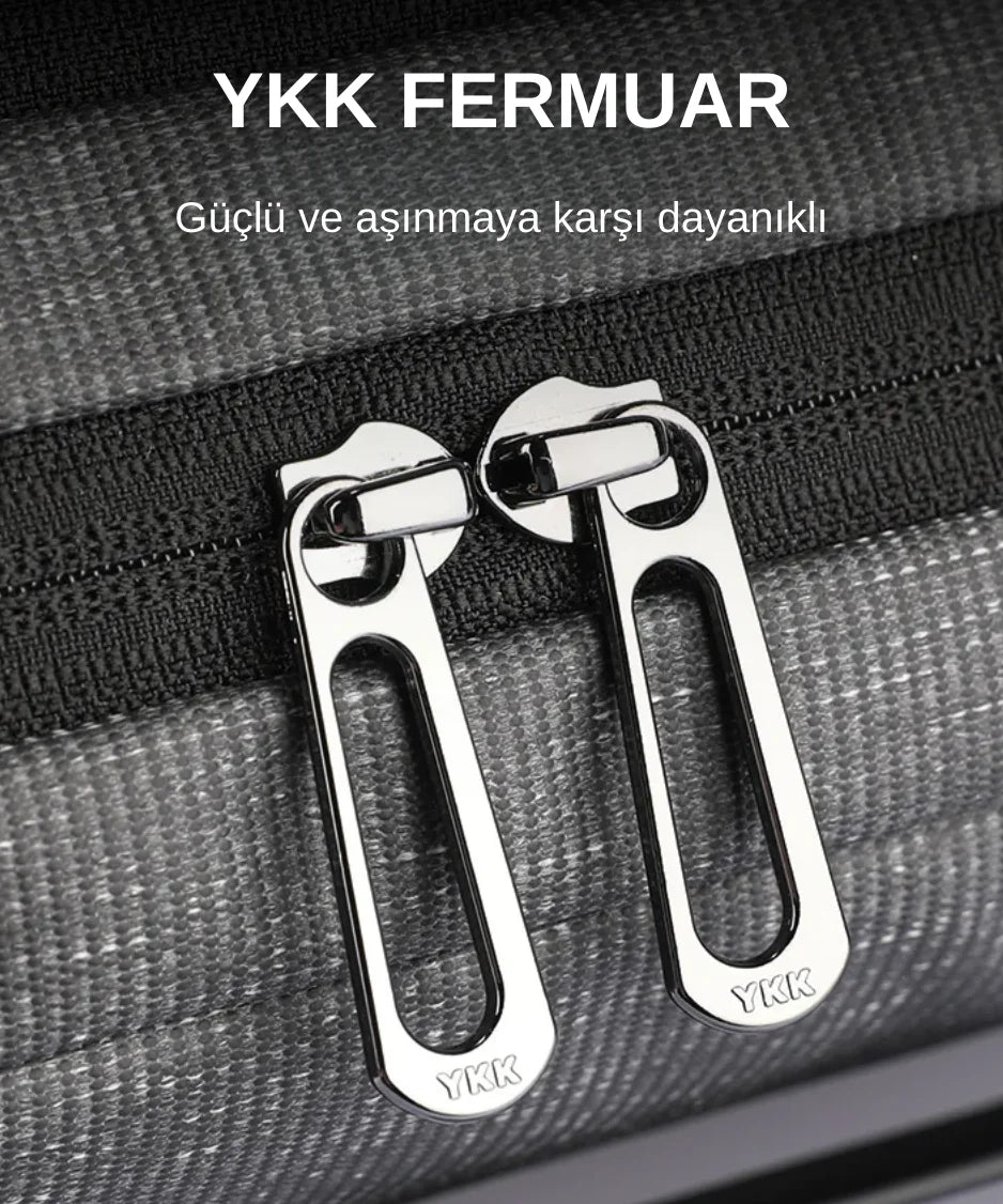 Dünyaca ünlü YKK fermuarlar, çantanızın uzun ömürlü olmasını sağlar. Güçlü yapısı ve aşınmaya karşı yüksek direnciyle, her açma-kapamada konfor sunar. Günlük kullanımda ve seyahatlerde sizi asla yarı yolda bırakmaz.