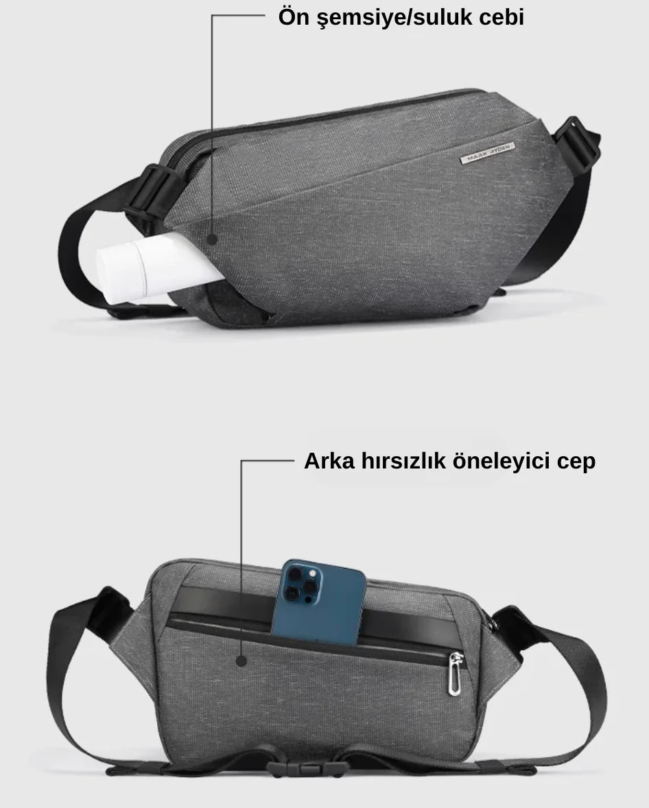 Ön fermuarlı cep, ana bölme, arka anti-hırsızlık cebi ve gizli orta katman sayesinde eşyalarınızı güvenli ve düzenli şekilde taşımanızı sağlar.