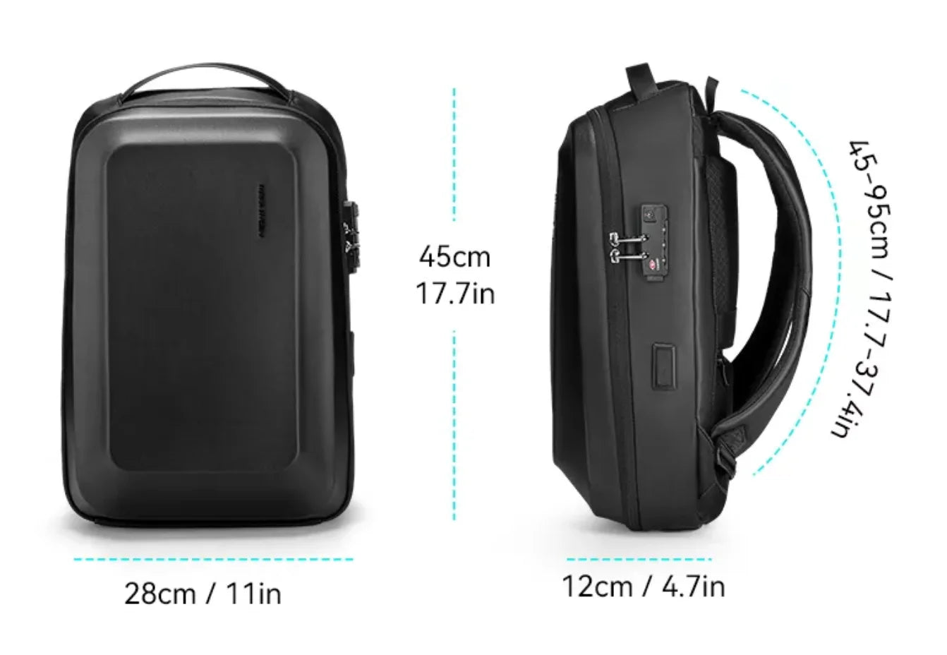 Mark Ryden GuardianShell, hardshell tasarımıyla çantanızdaki eşyaları koruyan, suya dayanıklı ve darbelere karşı dirençli bir sırt çantasıdır. YKK fermuarlar, TSA anti-hırsızlık kilidi, arka trolley askısı ve arka anti-hırsızlık cebi ile donatılmıştır. Ayrıca 15.6 inç laptop ve 12.9 inç tablet için ayrı bölmeleri bulunur ve üçüncü nesil dış USB şarj portu sunar.