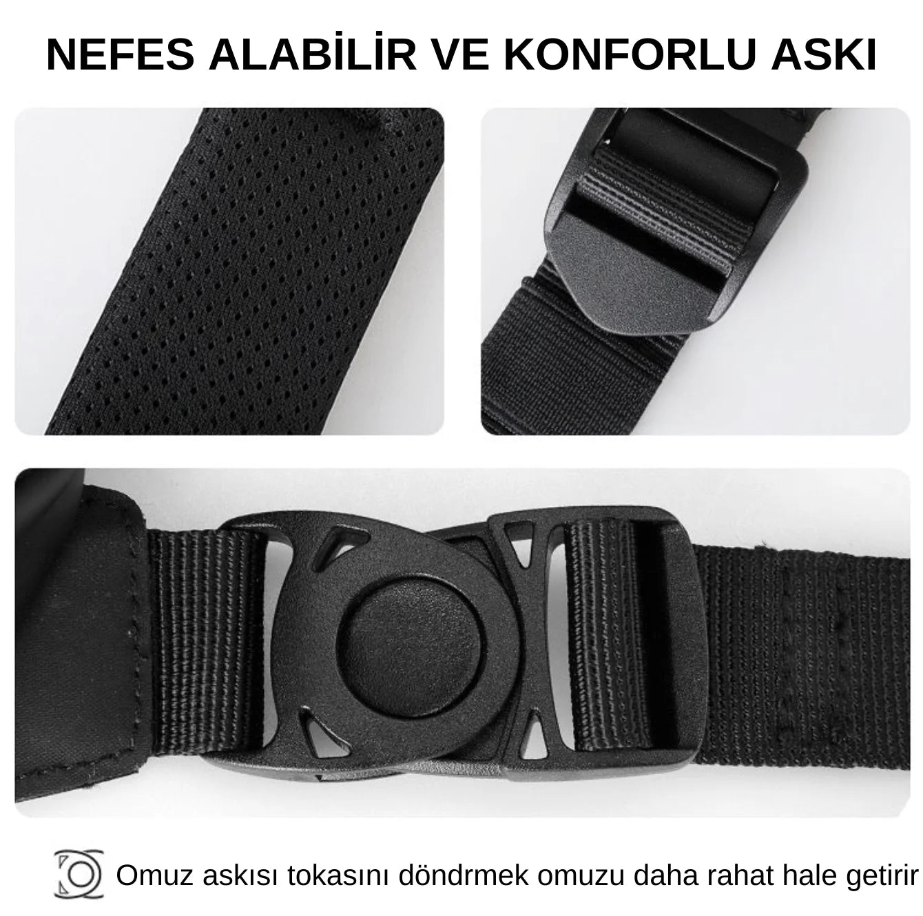 Evet. Omuz askısı, farklı boy ve vücut tiplerine göre ayarlanabilir, konforlu ve ergonomik bir taşıma deneyimi sunar.