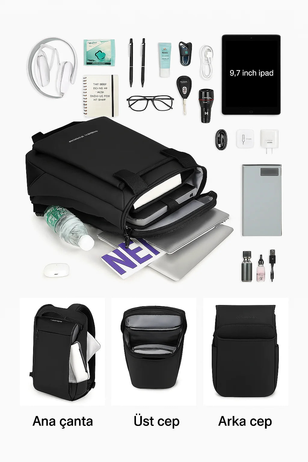 9.7” iPad için özel bölmesi ve 5.5” boyutundaki telefonlar için gizli anti-hırsız cebi, cihazlarınızı güvenle taşımanızı sağlar. Harici USB şarj portu sayesinde hareket halindeyken cihazlarınızı şarj edebilirsiniz.