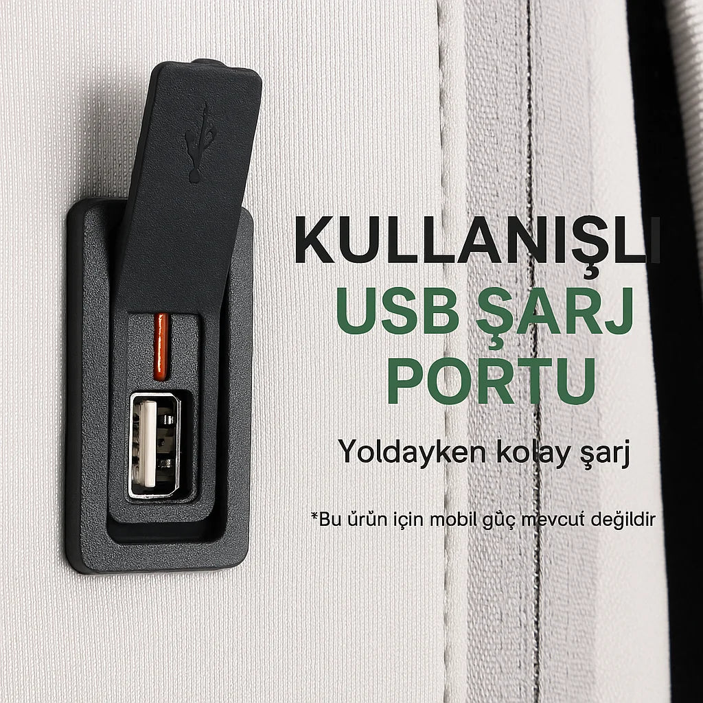 • Adım 1: Çantanızın iç kısmındaki USB kablosunu bulun ve bir güç kaynağına (power bank) bağlayın. Bu bağlantı, şarj cihazınızdır.