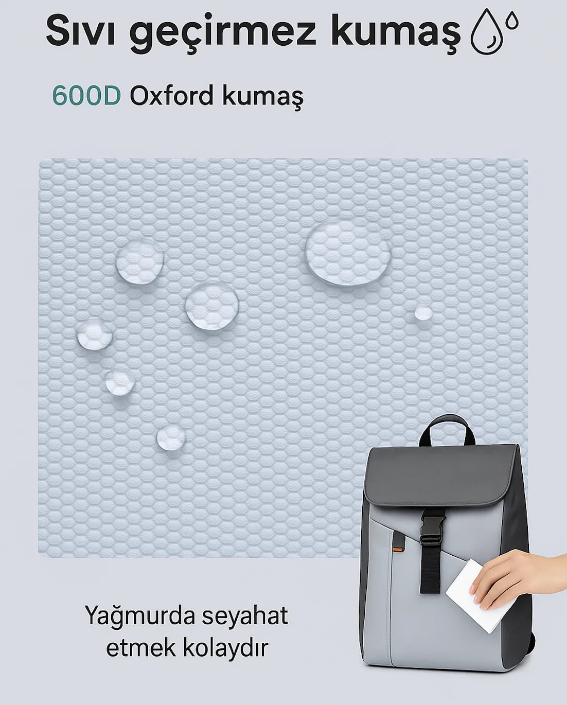 600D Oxford kumaştan üretilmiş bu çanta, su geçirmez yapısıyla seni aniden bastıran yağmurlarda bile yarı yolda bırakmaz. Islanma derdine son, içindekiler her zaman güvende. Hızlıca sil ve yola devam et. Şehir hayatının temposuna tam uyum sağlar!