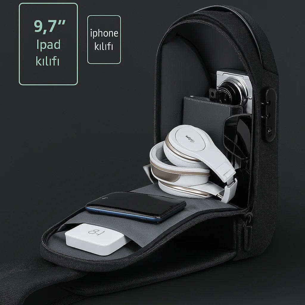 Geniş boyutlarıyla tablet için özel bir bölme ve çoklu depolama alanı sunar. Eşyalarınızı düzenli ve erişilebilir şekilde taşımanızı sağlar.