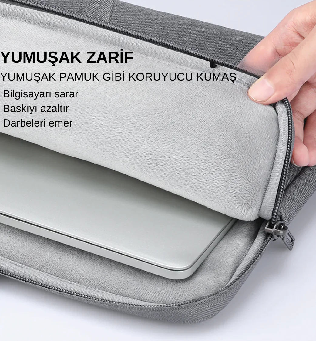 Dışarıdan güçlü, içeriden yumuşacık! Bu laptop çantasının iç astarı, bilgisayarını saran pamuksu dokusuyla hem darbelere karşı tampon görevi görür hem de çizilmelere karşı maksimum koruma sağlar. Her kullanımda konforu hissettirir, cihazını güvenle taşımanı sağlar. Hem zarif hem dayanıklı bir koruma istiyorsan, bu detay seni fazlasıyla mutlu edecek!
