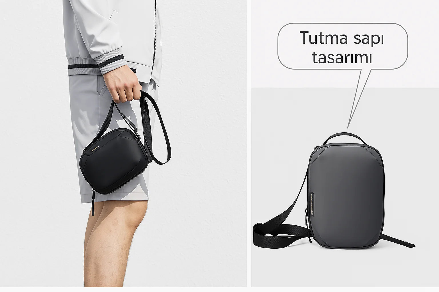 20 × 8 × 13 cm boyutlarıyla, günlük yaşamda tüm temel eşyalarınızı rahatça taşımanıza imkan sağlar. İç yapısı, düzenli ve kullanışlı depolama için tasarlanmıştır.