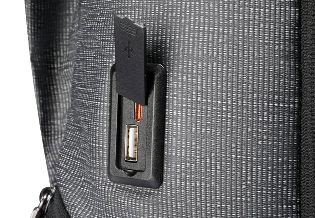 • Adım 2: USB kablosunu çantanın dış kısmındaki USB portuna bağlayın.